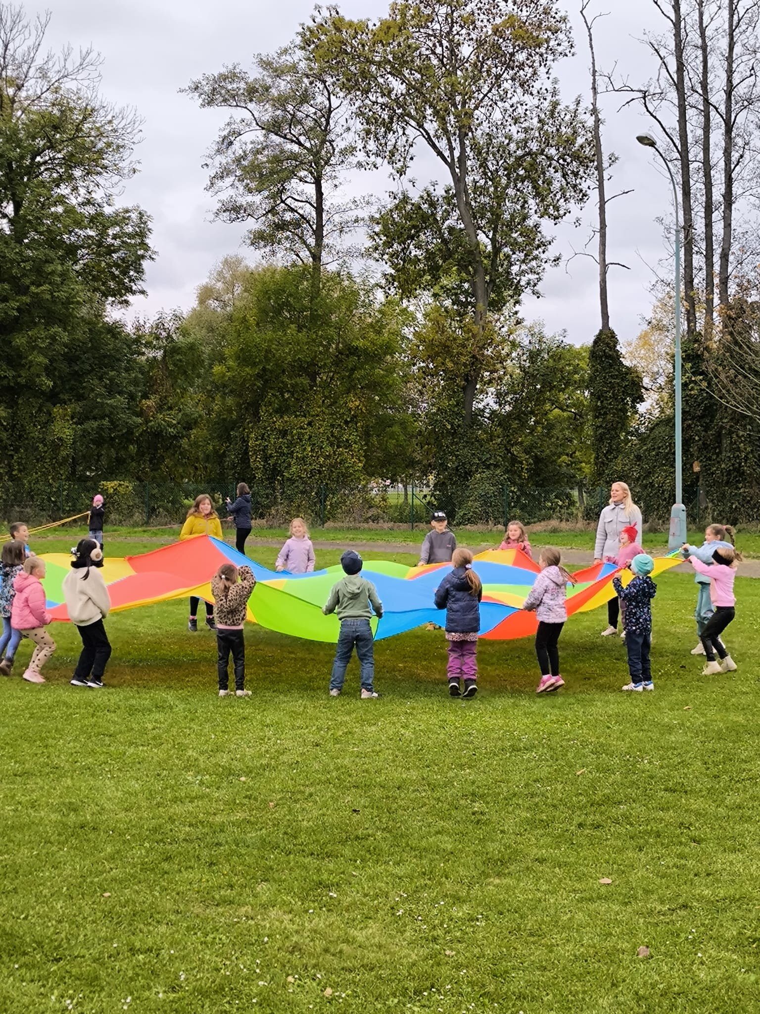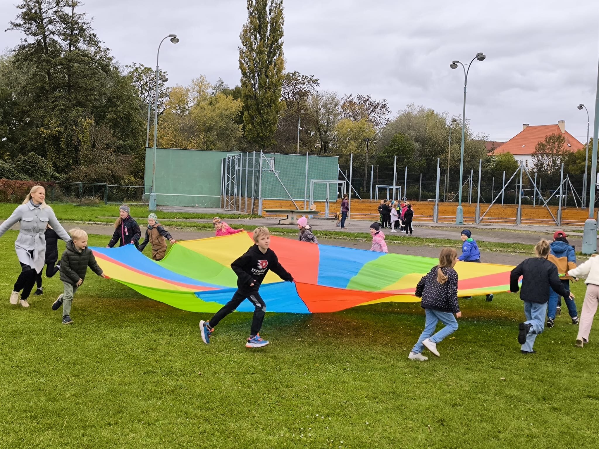 Zahráli jsme si jednu z velmi oblíbených her, hru s padákem, při které by se měly děti naučit vzájemné komunikaci a společně vnímat všechny okolo sebe. Cílem hry je posílit důvěru, komunikaci a naučit se společně řešit problémy. Další velmi oblíbenou hrou mezi dětmi je Laser game, při které děti překonávají různé překážky na houpajícím se laně. Cílem hry je si vzájemně pomáhat, důvěřovat si a komunikovat.