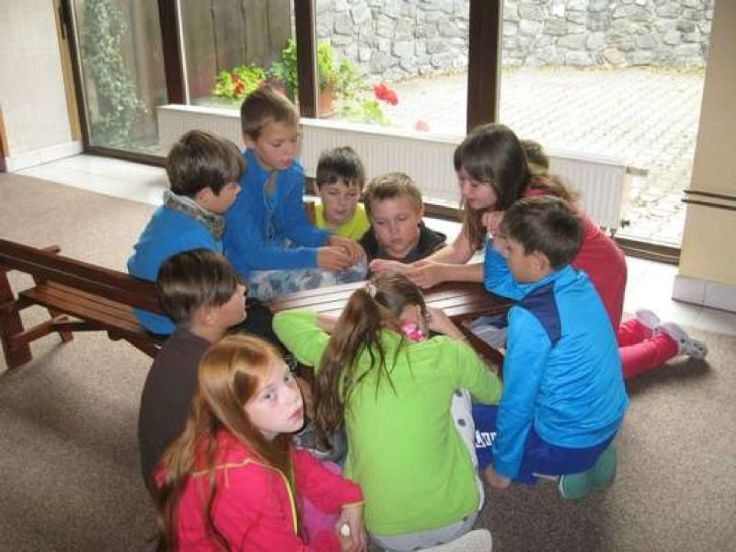 Naši čtvrťáci měli možnost v rámci svého pětidenního pobytu v krásné přírodě Českomoravské vrchoviny soutěžit o poklad otce Fury. Neměli to ani trochu jednoduché. Čekalo na ně velké množství různorodých úkolů. Patřilo k nim luštění, šifrování, hledání odpovědí na hádanky, hledání klíčů, náročné sportování, občas i dlouhé putování a vždy nutná spolupráce s ostatními členy skupiny. To vše bylo ztíženo nepříznivým počasím – mrholením, deštěm, větrem a nízkými teplotami. Jednu z indicií děti získaly na hradě Svojanov. Zde nás všechny zaujalo a možná i trochu vystrašilo vyprávění o historii hradu a o děsivých úkazech. Čtyři soutěžní týmy - červení, žlutí, modří a zelení - se ale žádného úkolu ani horšího počasí nezalekly. Postupně získaly klíče a indicie nezbytné k vyluštění hesla. Po jeho odhalení mohly týmy začít pátrat po pokladu. Velkou odměnou bylo mimo jiné koupání v bazénu se slanou vodou a diskotéka. Domů k rodičům se vrátily všechny děti spokojené, vysportované a po zásluze odměněné. Nezbývá než poděkovat zaměstnancům Penzionu na Vysočině v Hartmanicích, kde jsme byli ubytováni. Výborně se o nás staraly především paní kuchařky – jídlo nám všem chutnalo. Největší dík patří členům organizace SKI FANATIC, kteří pro nás připravili opravdu skvělý program.