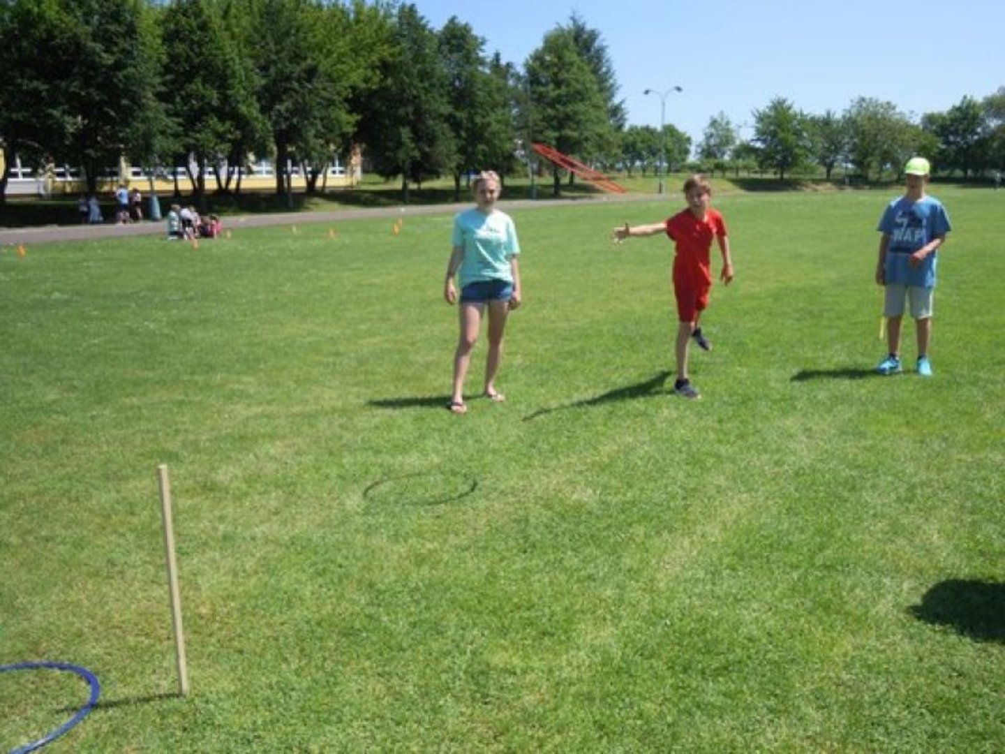 Pro děti bylo připraveno 9 stanovišť, které postupně plnily. Děti měly za úkol házet kroužky na tyč, nosit pingpongový míček na lžíci, skákat panáka, házet raketkami, hádat předměty podle hmatu, házet na koš a plnit další disciplíny. Na závěr každý dostal sladkou odměnu, bylo krásné počasí, tak si to všichni rádně užili. Děkuji své 9. třídě za pěkně připravenou akci.