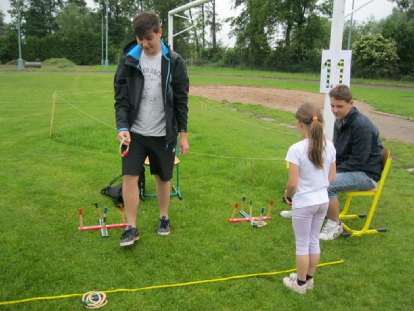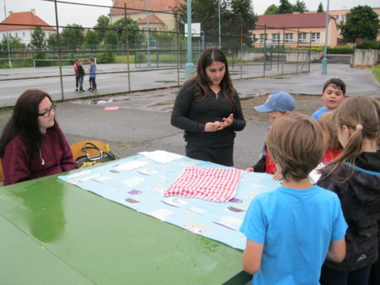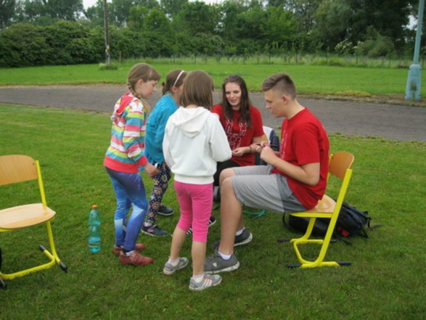 Nejprve připravili pozvánky pro jednotlivé třídy, kde se malé děti dozvěděly, co je bude v pátek 3. června čekat. Deváťáci na školním hřišti připravili 11 stanovišť, na kterých mohly děti z prvního stupně vyzkoušet nejen své dovednosti a obratnost, ale i spolupráci při plnění různých úkolů. Samozřejmě nechyběla ani odměna za splněné úkoly. Myslíme si, že tento Den dětí se opravdu vydařil i díky počasí, které sice chvilkami zlobilo, ale umožnilo nám tuto pěknou akci dokončit.