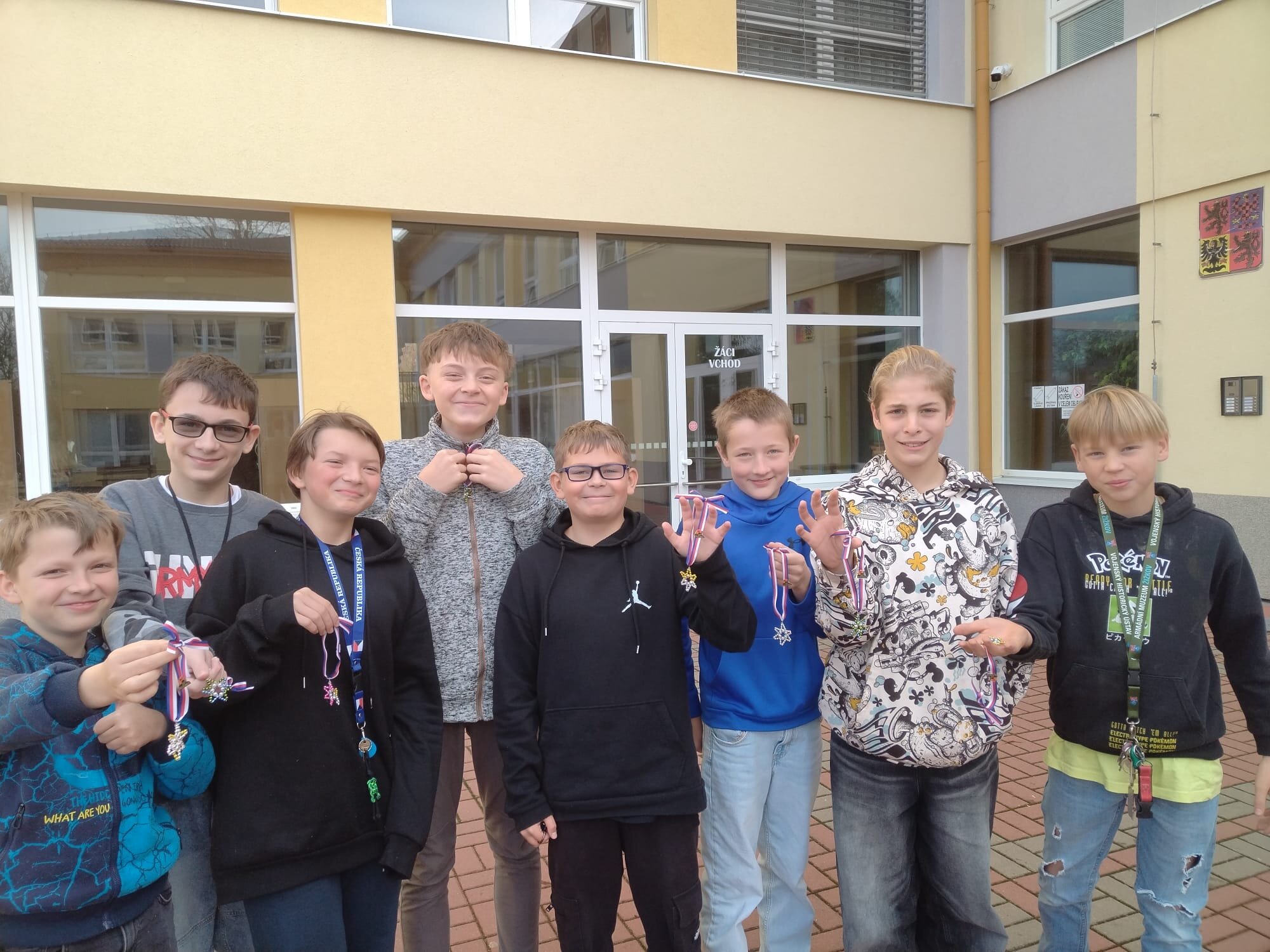 Rozhodli jsme se přiblížit ostatním náš český klenot, perličkové vánoční ozdoby z Poniklé, které jsou oceněny jako nehmotné dědictví pod záštitou UNESCA. Naučili jsme se společně tyto skleněné ozdoby vyrobit a seznámili jsme se s tím, jak výroba jednotlivých skleněných částí probíhá. Všem se podařilo vyrobit krásné ozdoby, každý si dle svého vkusu vybral rozdílnou skladbu barev. Úkol, označit ozdobu symbolem ČR, jsme vyřešili trikolorou, která vytvořila poutko k zavěšení ozdoby na stromečku. Na hodině výtvarné výchovy každý vyrobil vánoční přáníčko a v hodině anglického jazyka žáci připravili dopis, ve kterém představili naši školu, Českou republiku a vánoční tradice.