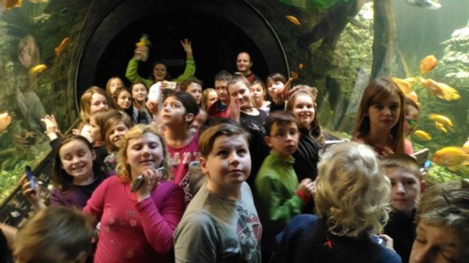 Poslední čtvrteční zastávkou bylo obří akvárium, ve kterém si žáci prohlédli unikátní sbírku lebek exotických ryb. Po ní se vydali směrem do prostor, simulujících deštný prales, kde z lávky pozorovali krásu rostlin obdivuhodných tvarů a barev. Po průchodu, na němž některé z dětí zasáhl i tropický déšť, na všechny čekala sladkovodní tropická tůň se společenstvím zhruba 500 kusů ryb Jižní a Střední Ameriky, přičemž čas a termín naší návštěvy se shodoval s časem krmení ryb. Viděli jsme tak i potápěče, nořícího se do vody mezi rejnoky či piraně. Zbytek prohlídky obstarala další akvária s rybami, dravou kajmankou či projekce filmu o přírodních krásách z celého světa.