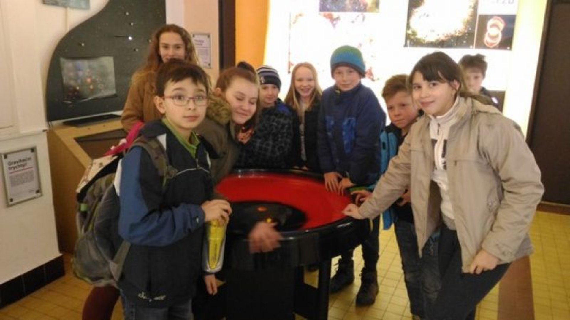 Úvodní zastávka byla rozdělena na dvě části. První z nich se konala v planetáriu a provázel ji pořad, při kterém se děti z úst lektorů dozvěděly spoustu zajímavostí týkajících se pozorování denní a noční oblohy a následný virtuální průlet Sluneční soustavou jim ukázal její celkové uspořádání. Po podrobnějším průzkumu některých vesmírných objektů se dění exkurze přesunulo na budovu hvězdárny. V jejích prostorách všichni společně rozebrali příčiny střídání dne a noci, ročních období a fází Měsíce za využití teluria. Nakonec jsme, i díky příznivému počasí, navštívili kopuli s dalekohledem, který nám nabídl pohled na Slunce a sluneční skvrny.