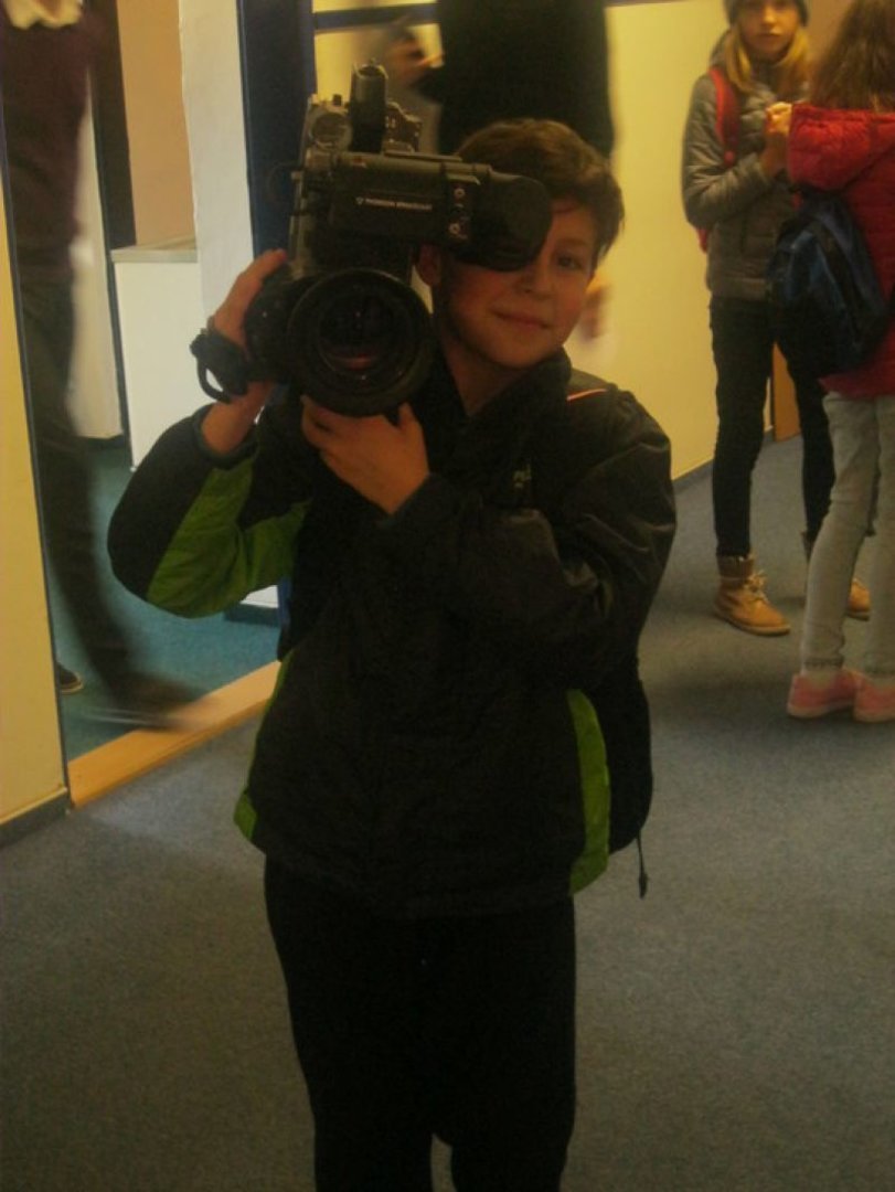 Dalším naším cílem se stalo televizní studio Východočeské televize V1, kde se žáci pod vedením profesionálů z řad vedení televize seznámili se starými a současnými kamerami, viděli záznamové kazety a disky, prozkoumali odbavovací pracoviště a dokonce se vyřádili ve studiu před zeleným pozadím. Některé z dětí v sobě objevily talent v podobě skvělého uvádění zpráv a ti moderátoři z řad dětí, kteří měli zelené oblečení, nám na obrazovce dokonce úplně zmizeli z obrazu.