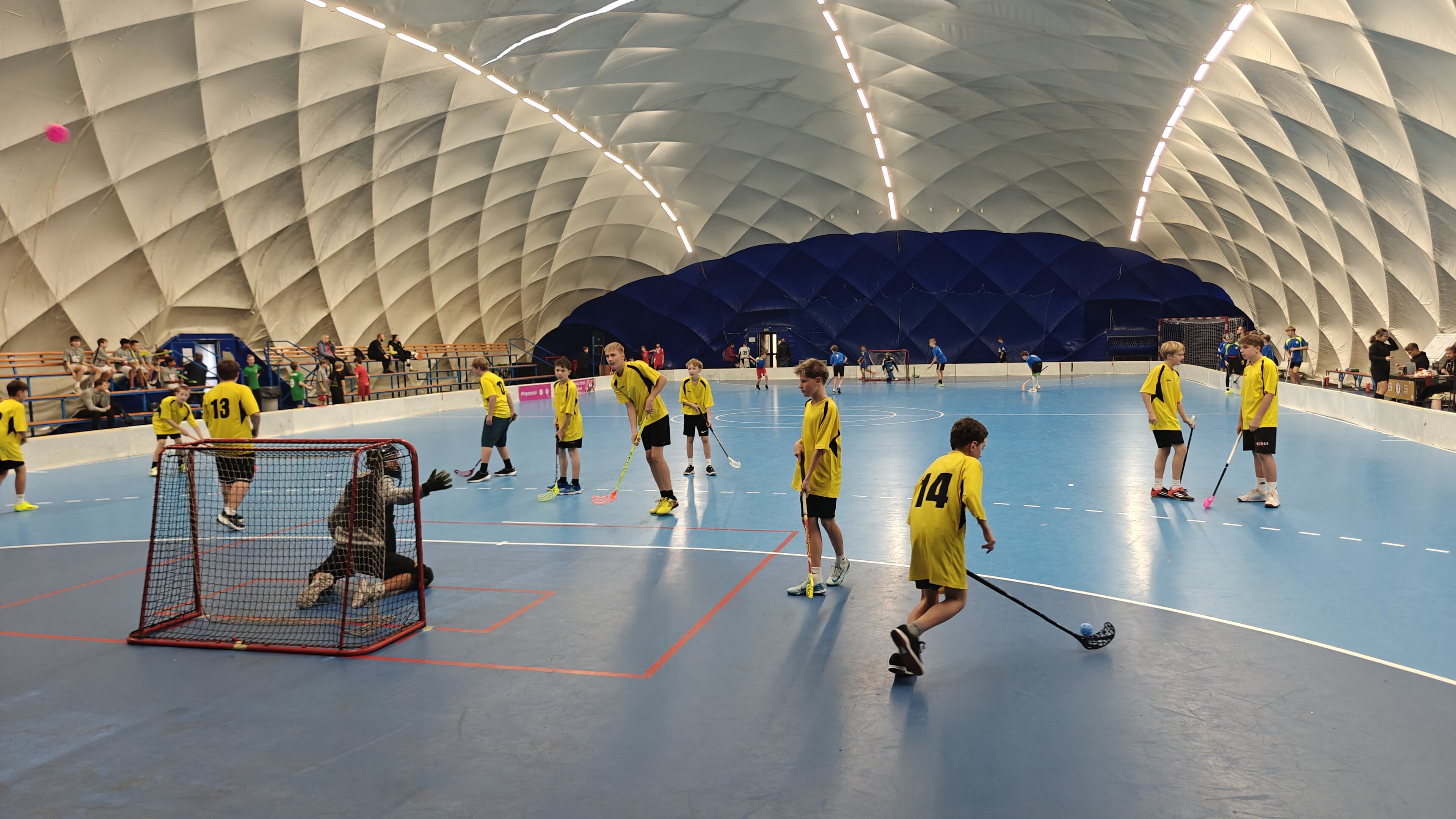 Hned první zápas proti zkušenějšímu mužstvu ze Studánky byl náročnou zkouškou – naši florbalisté podlehli 0:9. V dalším utkání proti Polabinám 3 už se tým sehrál lépe, předvedl několik hezkých akcí a po bojovném výkonu prohrál 1:5. Jediný gól vstřelil Jáchym Rykr.