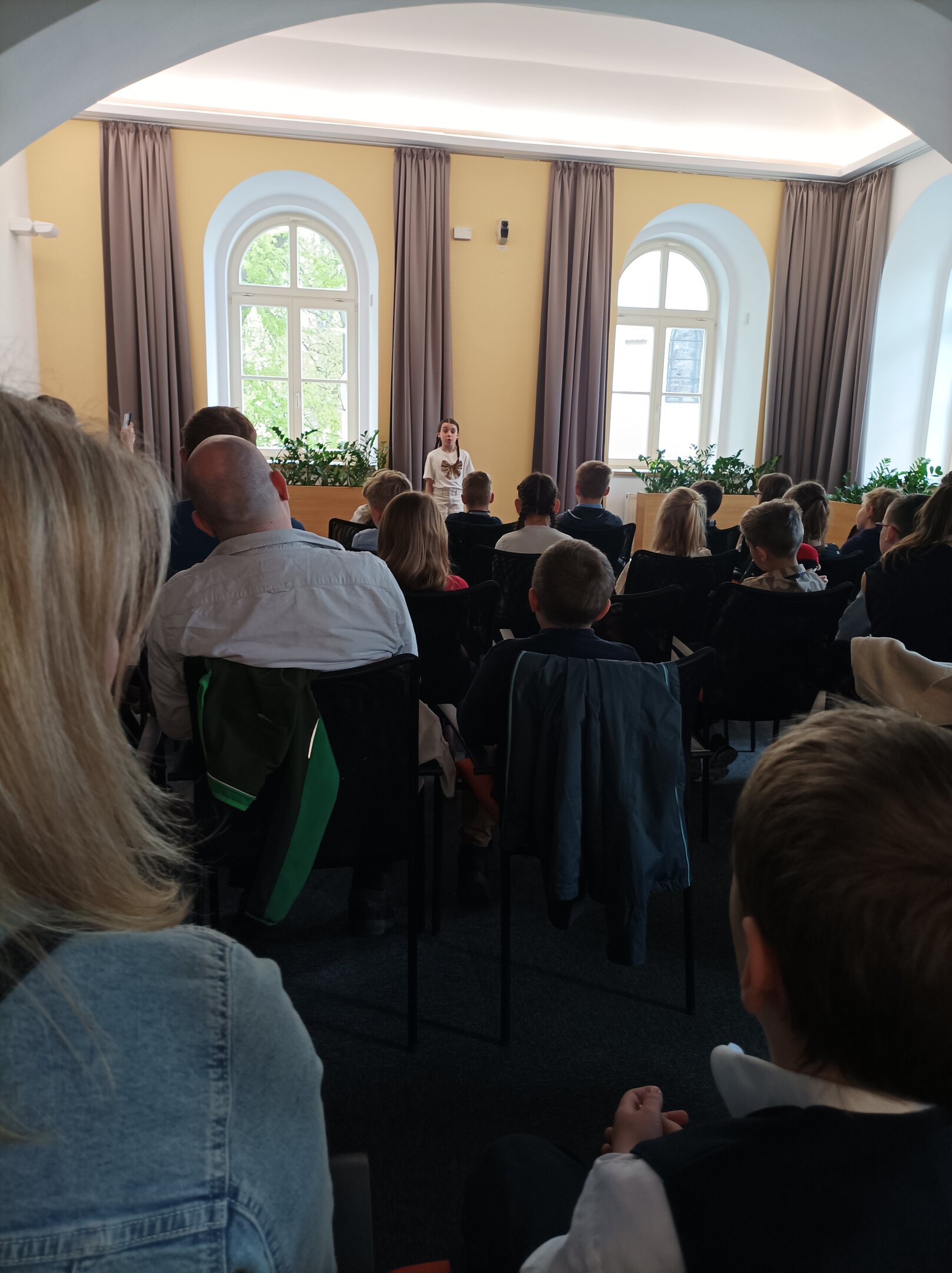 V pondělí 20. dubna se v sále Jana Kašpara v Pardubicích konala krajská přehlídka dětských recitátorů Dětská scéna 2026. Z okresního kola se sem v rámci své 1. kategorie (žáci 2. a 3. ročníku ZŠ) probojovala i žákyně 3. A třídy naší školy Nikola Grünwaldová.