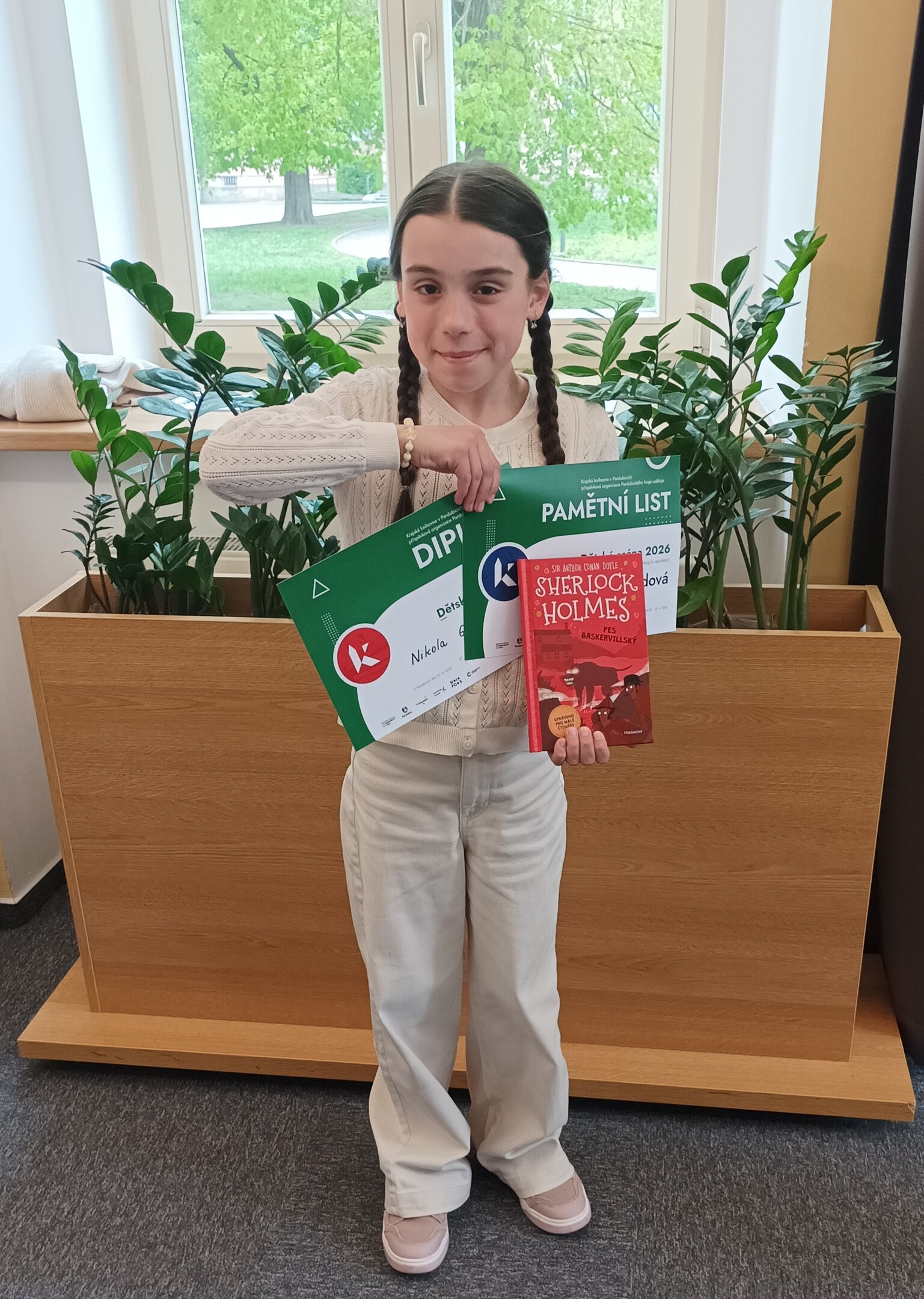 Nikolce patří poděkování za vzornou reprezentaci naší školy. Přejeme jí, ať svou recitací dokáže zaujmout publikum i nadále.