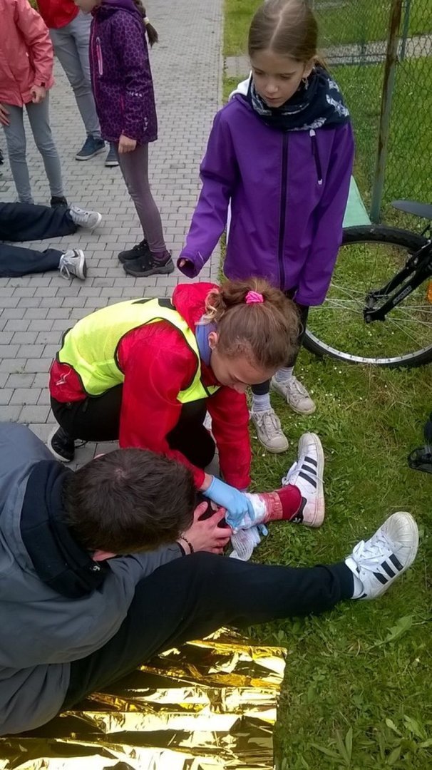 V letošním roce se z naší školy zúčastnilo pouze družstvo prvního stupně ve složení Tereza Čabanová, Monika Lacinová, Aneta Hnilicová, Adéla Holubová a Barbora Šimková. Děvčata měla za úkol ošetřit zlomeninu předloktí, tepenné krvácení z holeně, podvrtnutý kotník, popáleniny druhého stupně a odřeniny. Dále předvedla různé typy obvazů a přenos raněného. Dívky si vedly výborně, ztratily pouhých deset bodů, čímž zvítězily a postoupily do krajského kola, které se bude konat 31. května ve Svitavách.