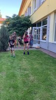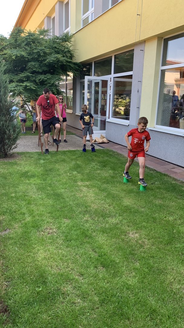 Odpoledne jsme si zpestřili soutěží mezi rodiči a dětmi na chůdách. Odměnou pro rodiče byl diplom za zvládnutí první třídy.