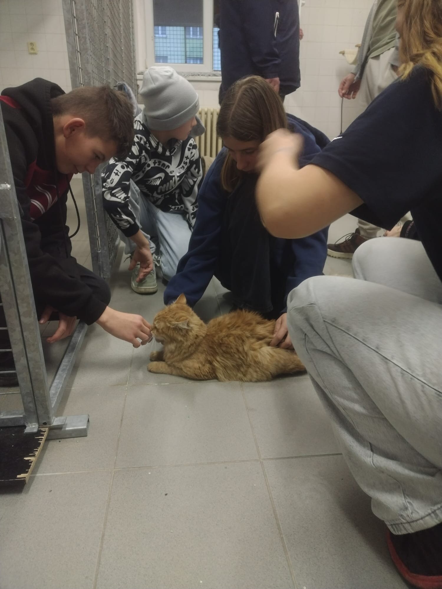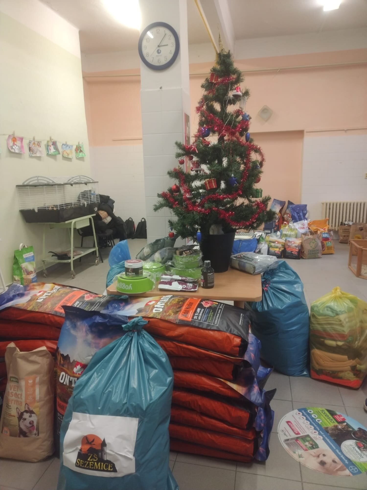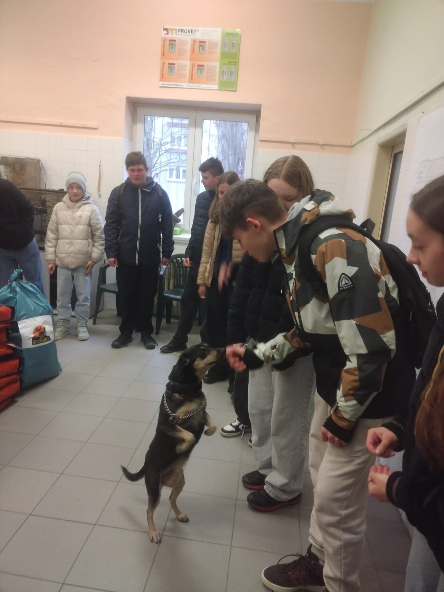 Při komunikaci s útulkem, který je v Pardubicích pod záštitou Městské policie, jsme byli pozvaní k jeho návštěvě. V pátek odpoledne se na závěr letošního roku vydalo 11 žáků 2. stupně do útulku a osobně předali dary za celou ZŠ. Strážníci se nám přibližně hodinu a půl věnovali a my měli možnost seznámit se s jejich prací a vším, co je s útulkem propojené. V praxi jsme ověřili čipy a nedotaženou návaznost na registr. Našimi průvodci byla fenka Barča a Dáša. Prošli jsme celé zázemí útulku, od příjmu a až po aklimatizační zónu a kočičí obývák.