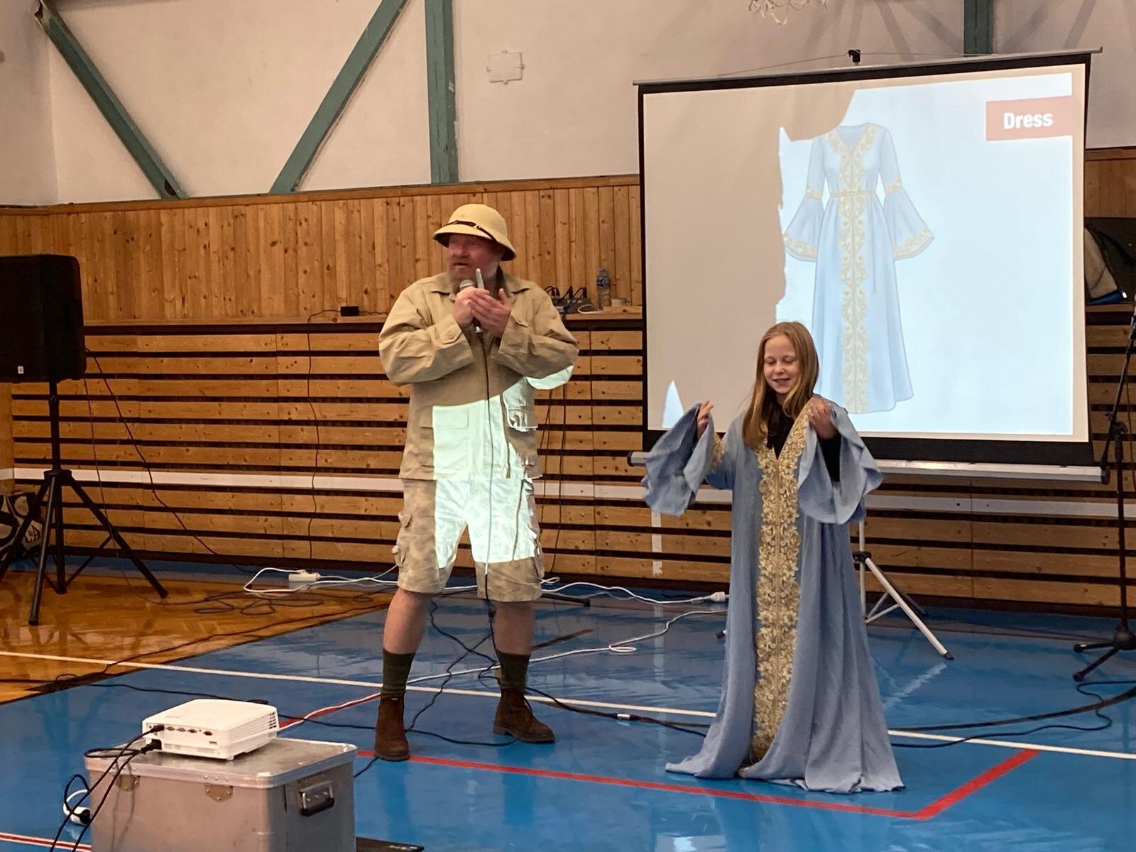 Ve čtvrtek 27. 11. se žáci 4. - 8. ročníků sešli ve velké tělocvičně, aby se vydali na pomyslnou cestu kolem světa s rodilým mluvčím z Anglie, všem dobře známým Neilem.