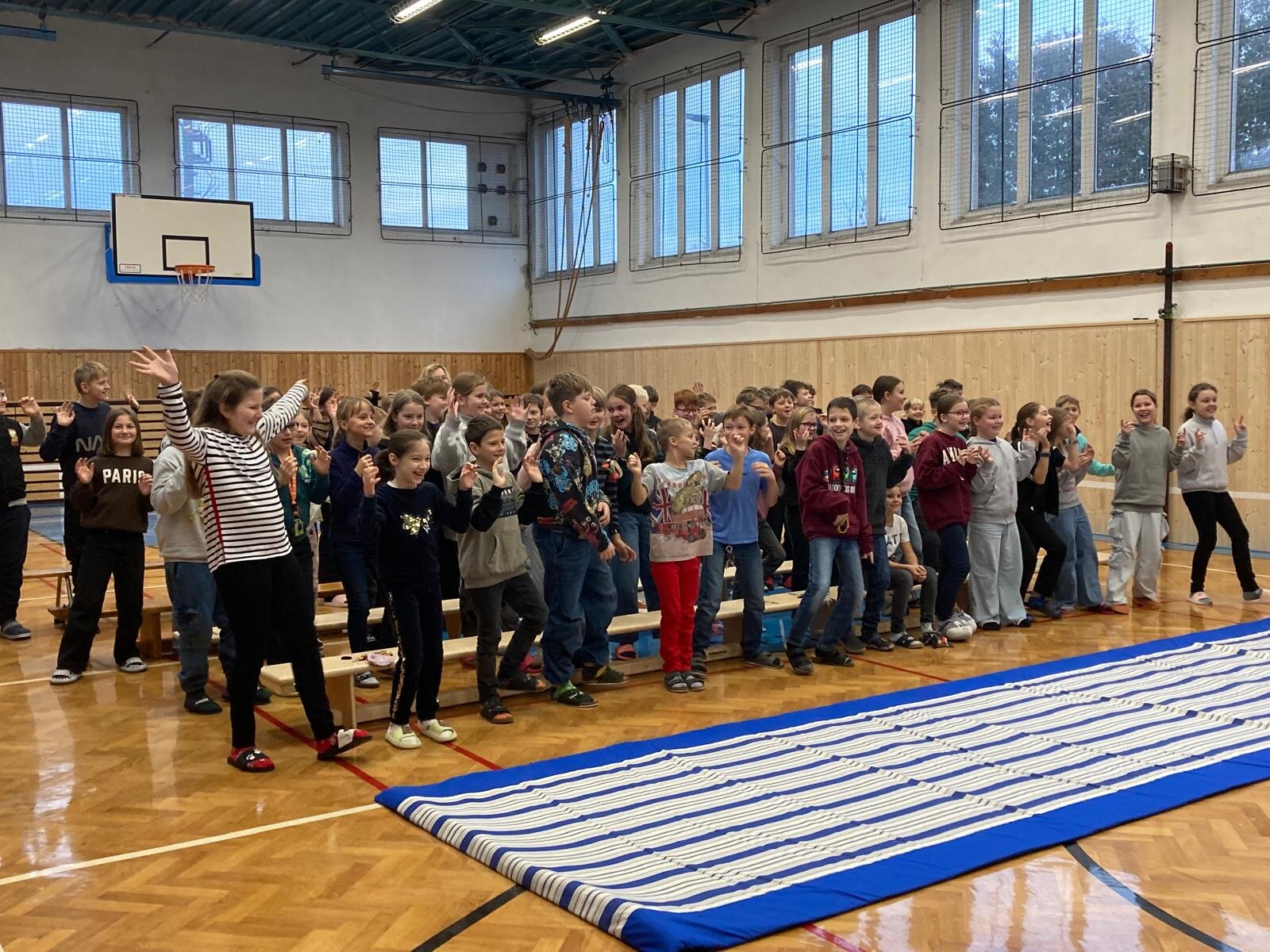 Samotnému setkání v tělocvičně předcházela poctivá příprava žáků s učiteli angličtiny ve třídách, pomocníkem byly kvalitní materiály - pracovní listy a poslechy, které nám Neil a jeho team s předstihem zaslali.