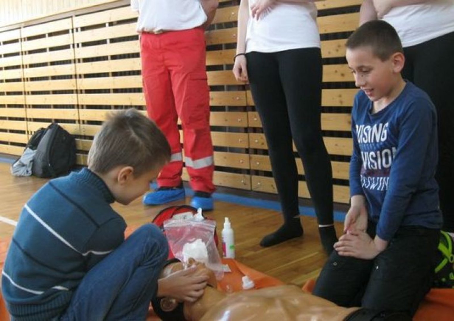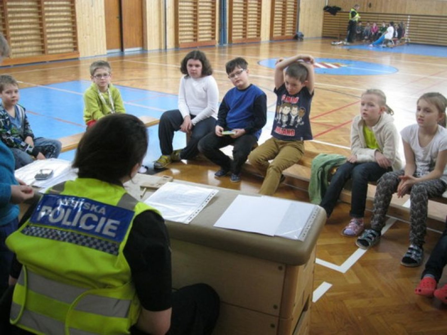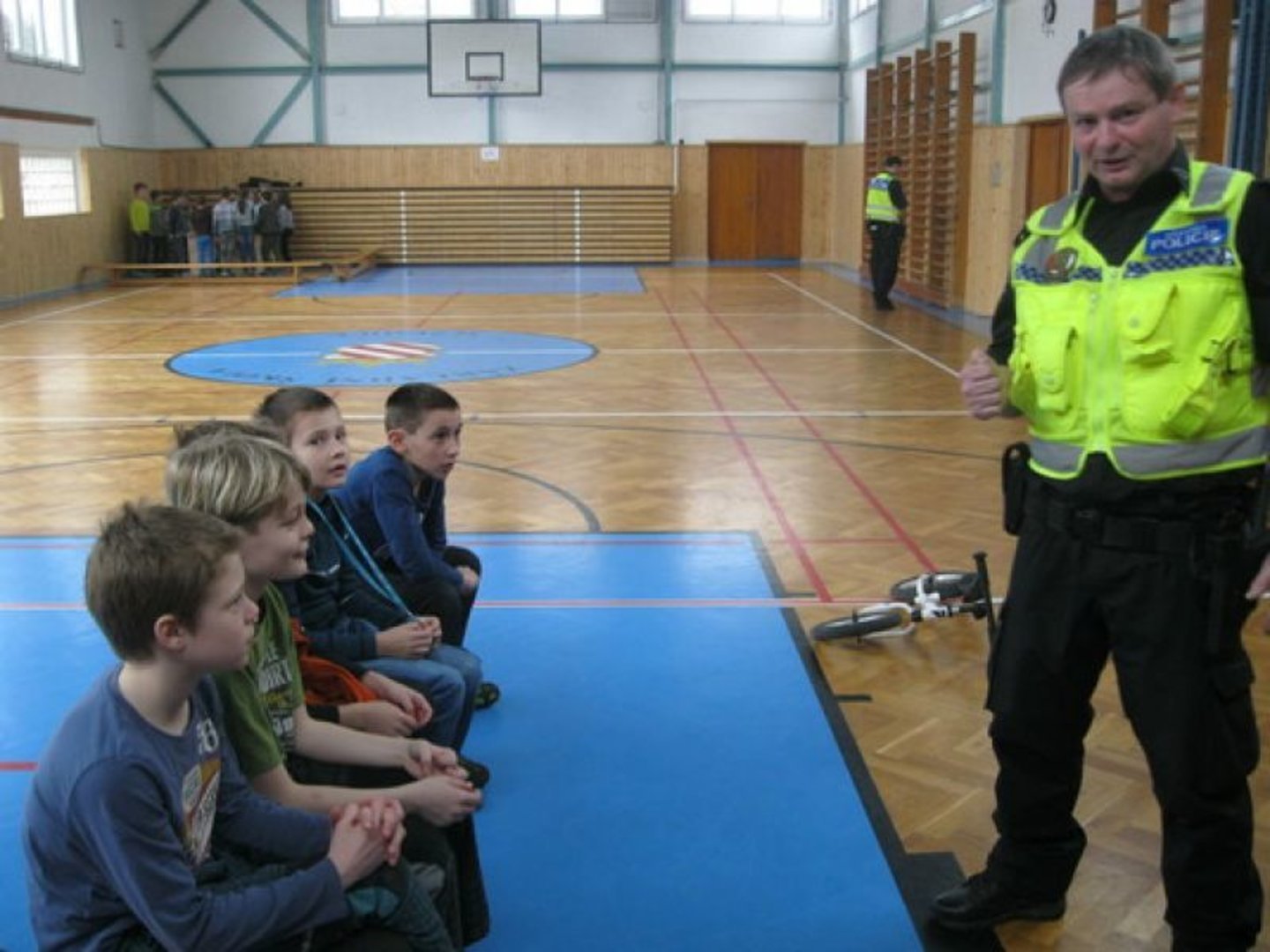 Potom jsme využili velmi zdařilé stránky BESIPU a především jejich interaktivní verzi. Zaměřili jsme se na význam reflexních prvků pro ochranu chodců a cyklistů. Další program byl pro nás připraven v tělocvičně. Nejprve to byly ukázky poskytnutí první pomoci a následovaly praktické činnosti na několika stanovištích se strážníky Městské policie Sezemice. Potěšující bylo, že děti byly úspěšné a za své znalosti a dovednosti si zasloužily pochvalu. Po návratu do třídy si každý žák vybral a vybarvil omalovánku s dopravní tématikou. Domů si všechny děti odnesly zaslouženou odměnu – pexeso nebo omalovánky a reflexní pásek.