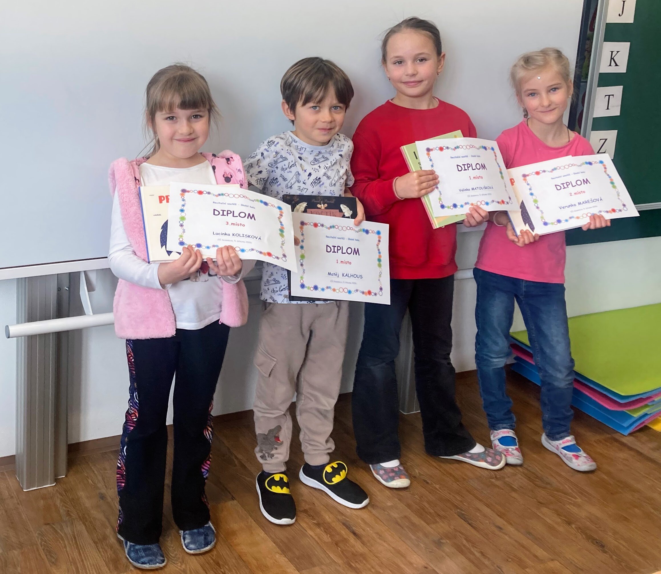 Těm nejlepším se otevřela cesta do okresního kola. Příští týden budou naši školu reprezentovat Nikola Grünwaldová, Magdalena Švestková, Eliška Nastoupilová a Magdalena Prokšová. Děvčatům přejeme hodně štěstí.