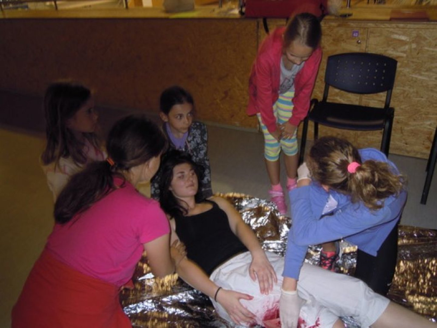 Celá soutěž probíhala ve sportovní hale, dívky měly za úkol ošetřit ženu s poraněným okem a otřesem mozku, pána v bezvědomí a dívku s tepenným krvácením. Dále předvedly transport, znalosti a dovednosti z obvazové techniky. Vedly si výborně a vyhrály krásné 2. místo. Moc děvčatům blahopřeji a děkuji za vzornou reprezentaci školy.