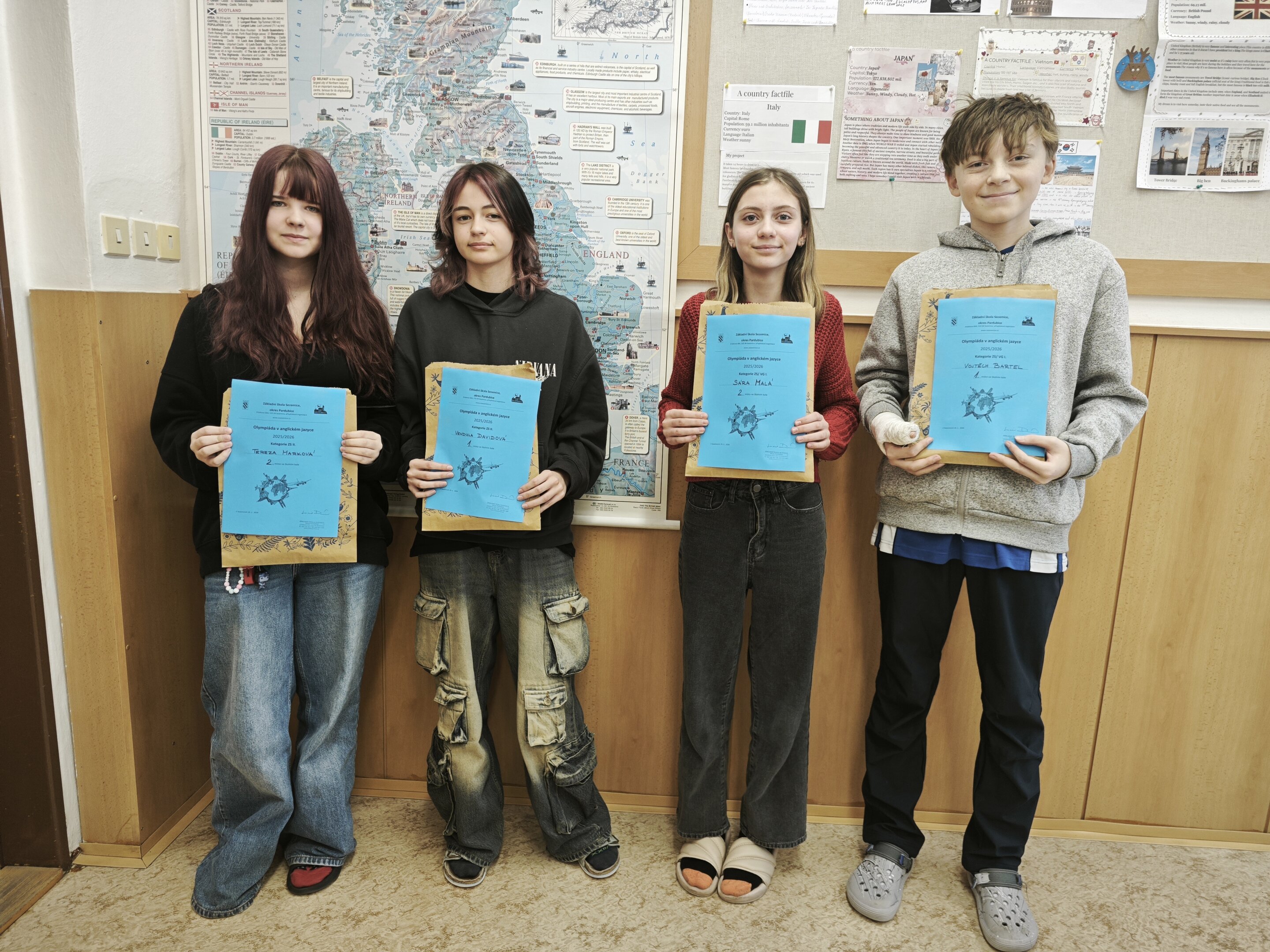 V lednu proběhlo školní kolo olympiády v anglickém jazyce ve dvou kategoriích - v kategorii ZŠ/VG I. a ZŠ II.