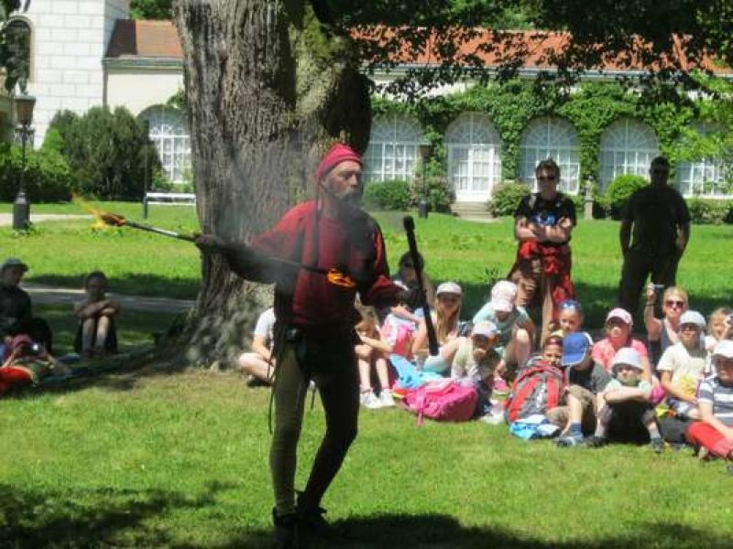 Tam nás čekal bohatý program. Nejprve jsme si v zámeckém parku zasportovali – vyzkoušeli jsme si střelbu z kuše na medvěda a chůzi po laně. Následovala prohlídka zámku, zvěřince a zámecké obory. Velký úspěch mělo kejklířské představení. Po dobrém obědě jsme nakoupili suvenýry a na úplný závěr jsme si zařádili na dětském hřišti. Počasí nám přálo, sluníčko hřálo a domů jsme se vraceli nadšení a bohatší o spoustu zážitků.