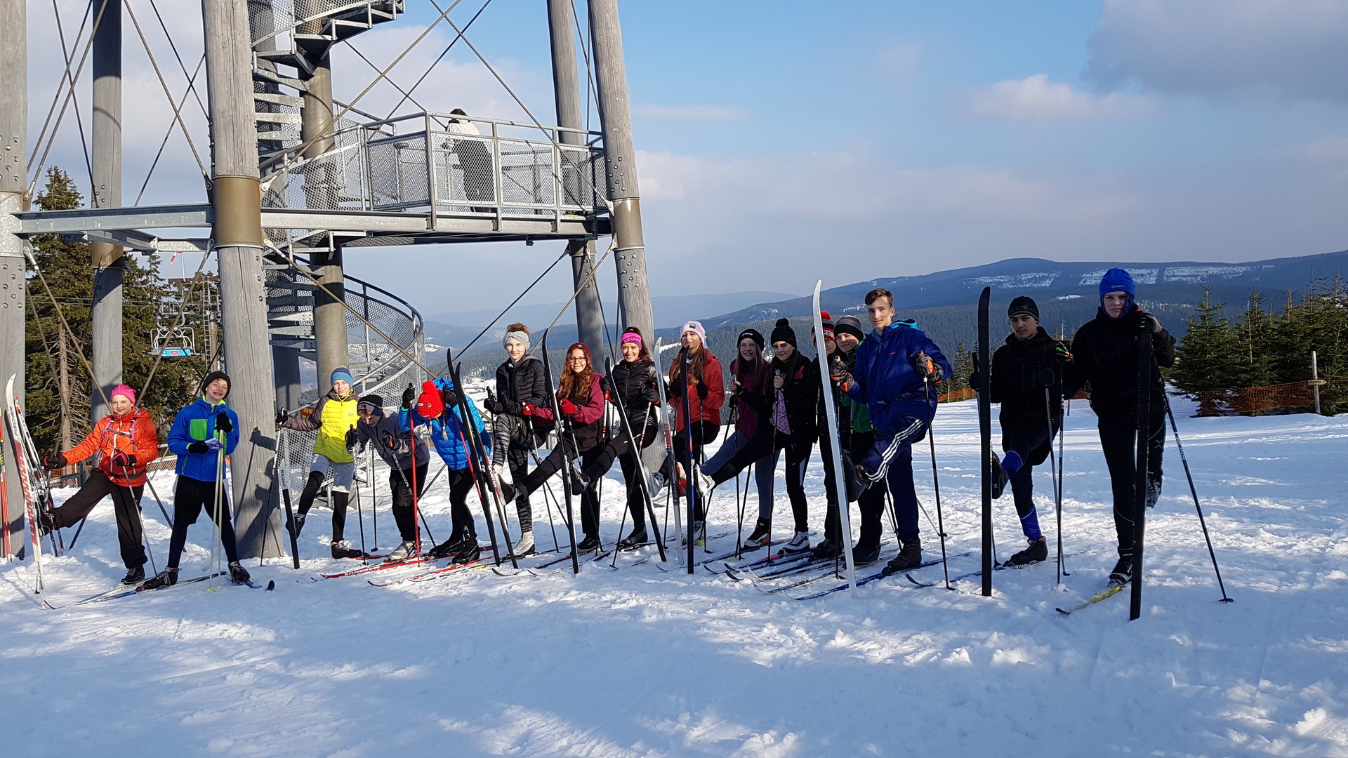 Všichni se tak již podívali na Hnědý vrch (Bramberk) na sjezdovkách a dnes i na běžkách s výstupem na rozhlednu. Při běžeckém výcviku jsme včera viděli z blízka vysílač Černá hora i sjezdovku s kabinovou lanovkou do Jánských Lázní. A tak již dnes před posledním dnem na lyžích máme objevené všechny krásy Pece pod Sněžkou, které jsou dostupné na lyžích. Zítra se rozloučíme s lyžemi a v neděli ráno i se sněhem.
