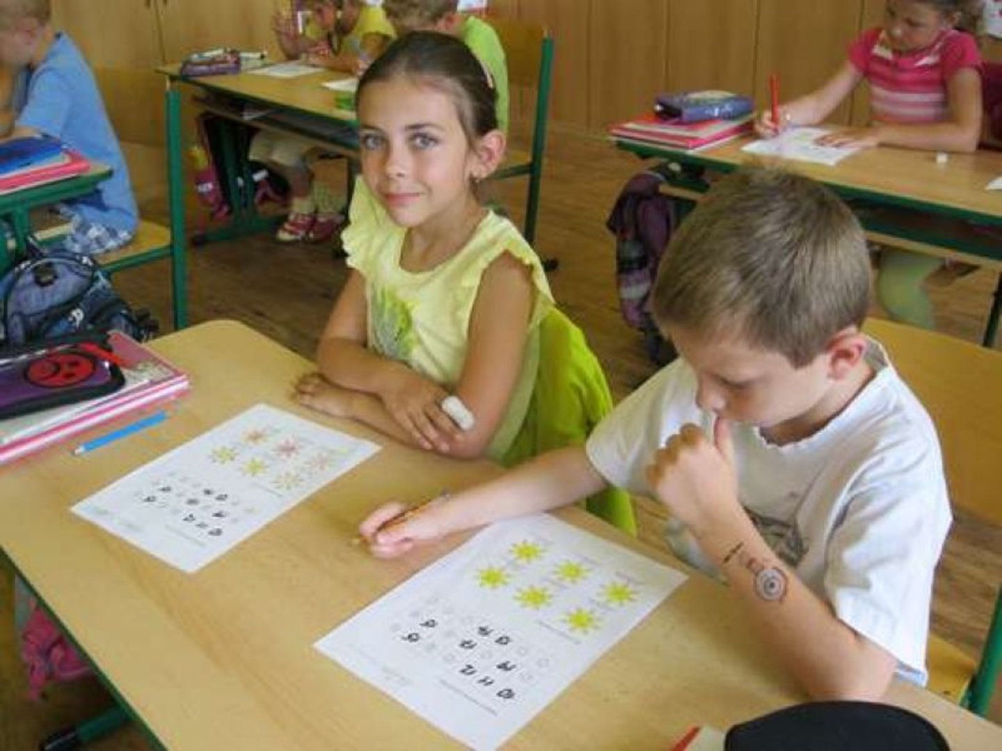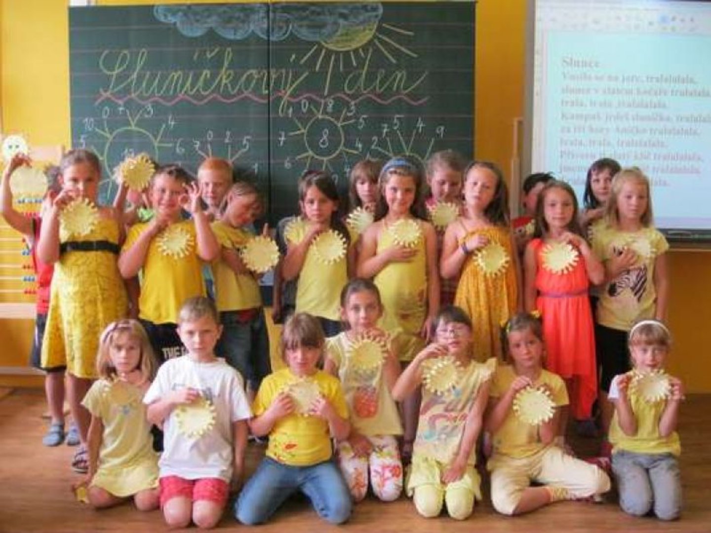 V průběhu celého vyučování jsme tedy plnili nejrůznější sluníčkové úkoly na interaktivní tabuli nebo v pracovních listech. Z časopisu Sluníčko jsme ve skupinách luštili pohádkové hádanky. Vyrobili jsme si sluníčka z papíru. O Slunci jsme se naučili novou písničku a na závěr jsme si i zatancovali. První letní den jsme si tedy doopravdy užili.