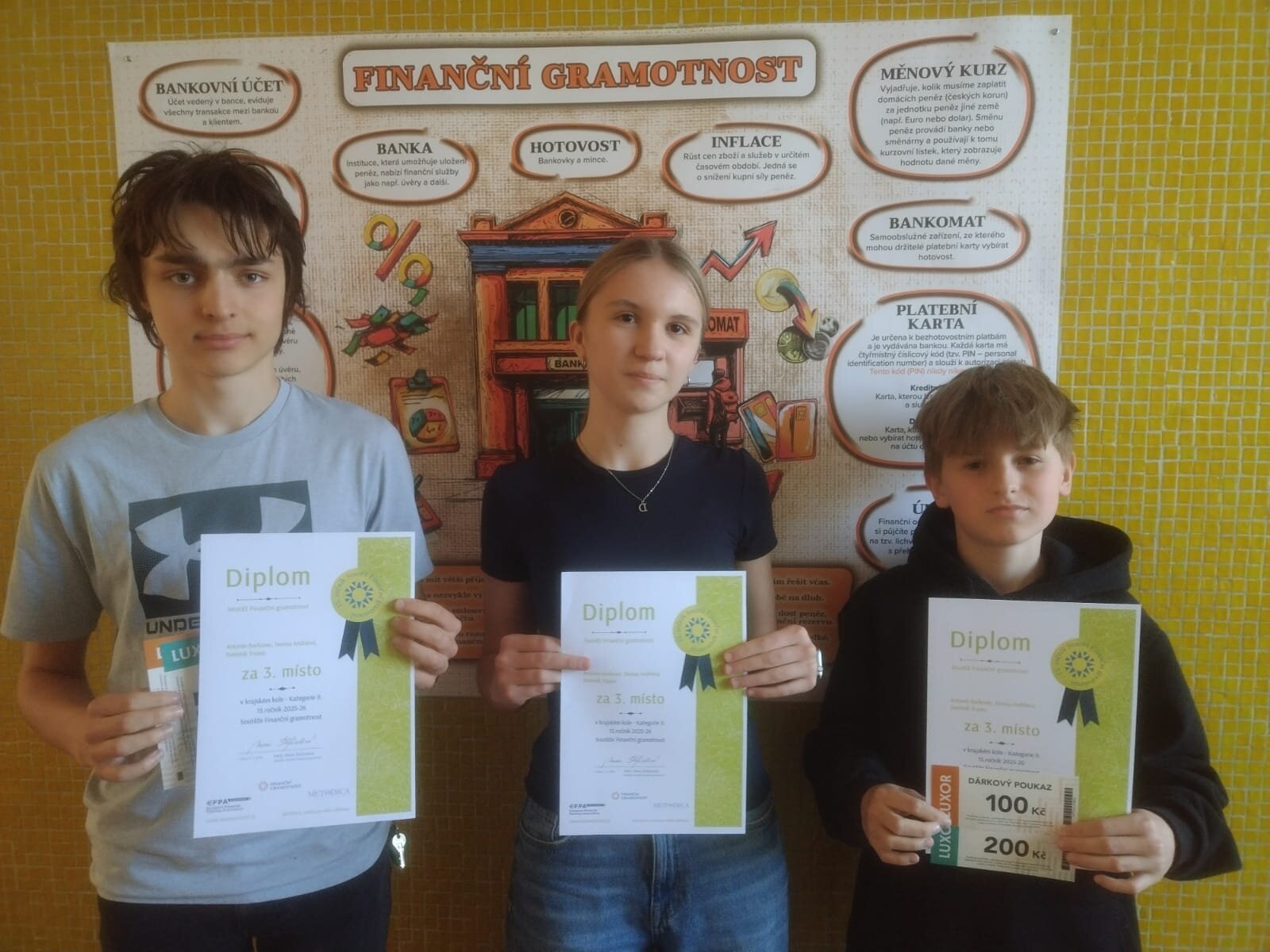 Poděkování za přístup, věnované úsilí a reprezentaci školy patří Denise Andrlové, Antonínu Borkovcovi a Dominiku Truncovi z 9. ročníku.