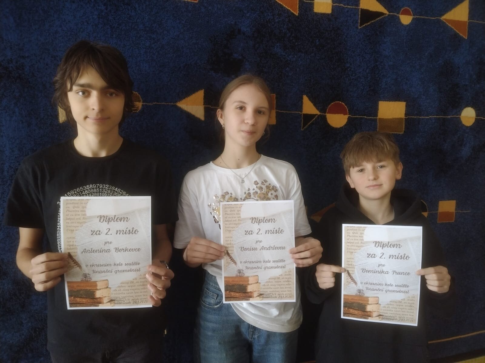 V průběhu ledna proběhlo okresní kolo 15. ročníku soutěže Finanční gramotnost. Naši školu zastupovala trojice deváťáků, kteří byli nejúspěšnějšími řešiteli testu školního kola.