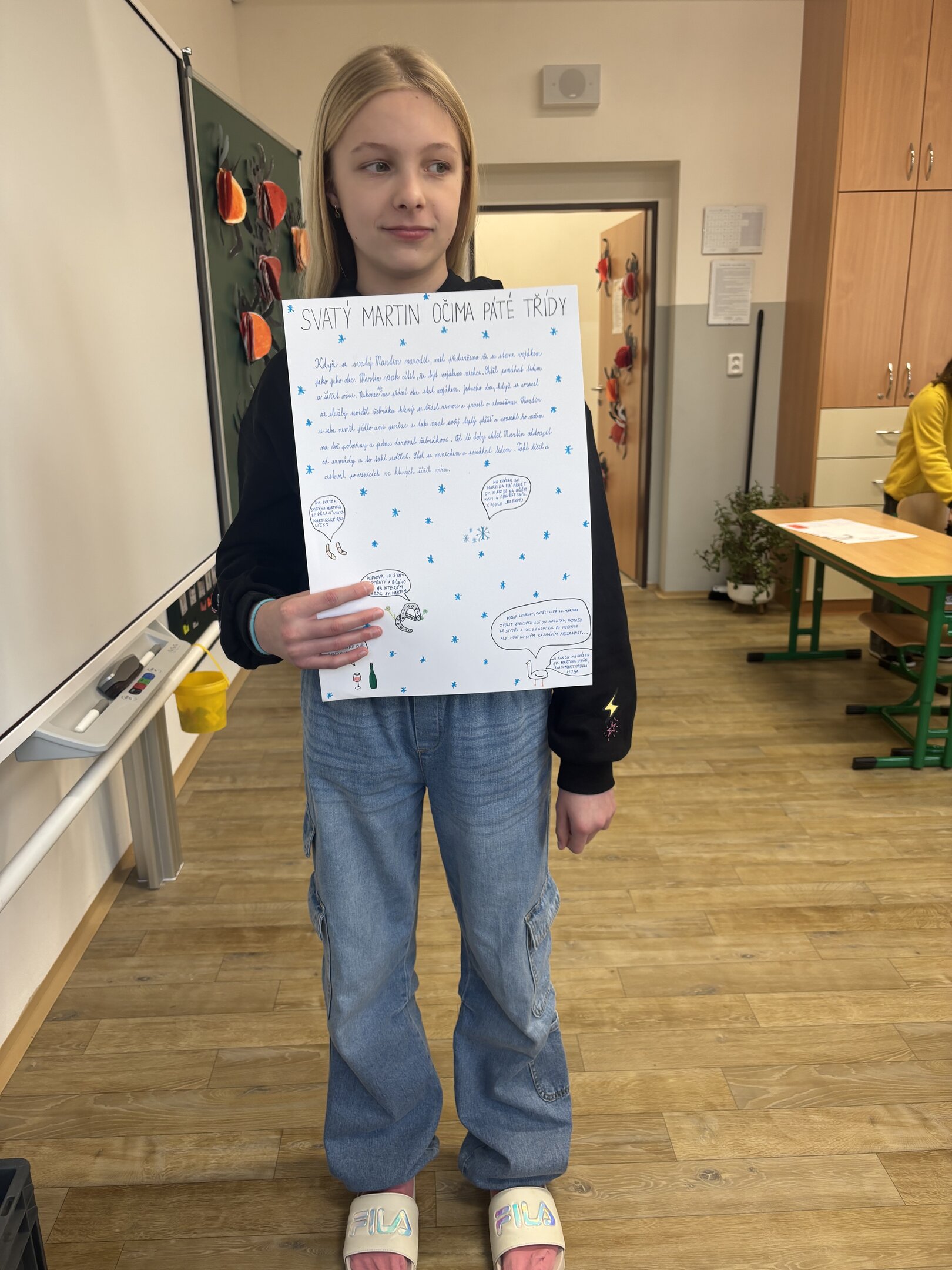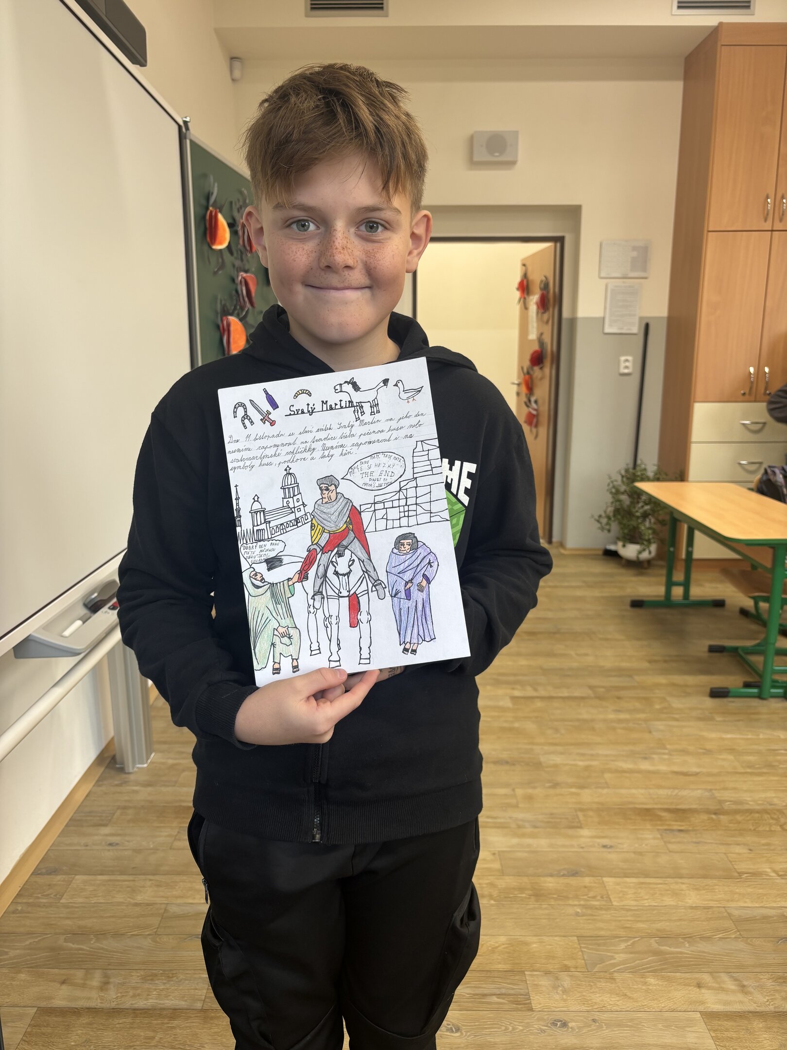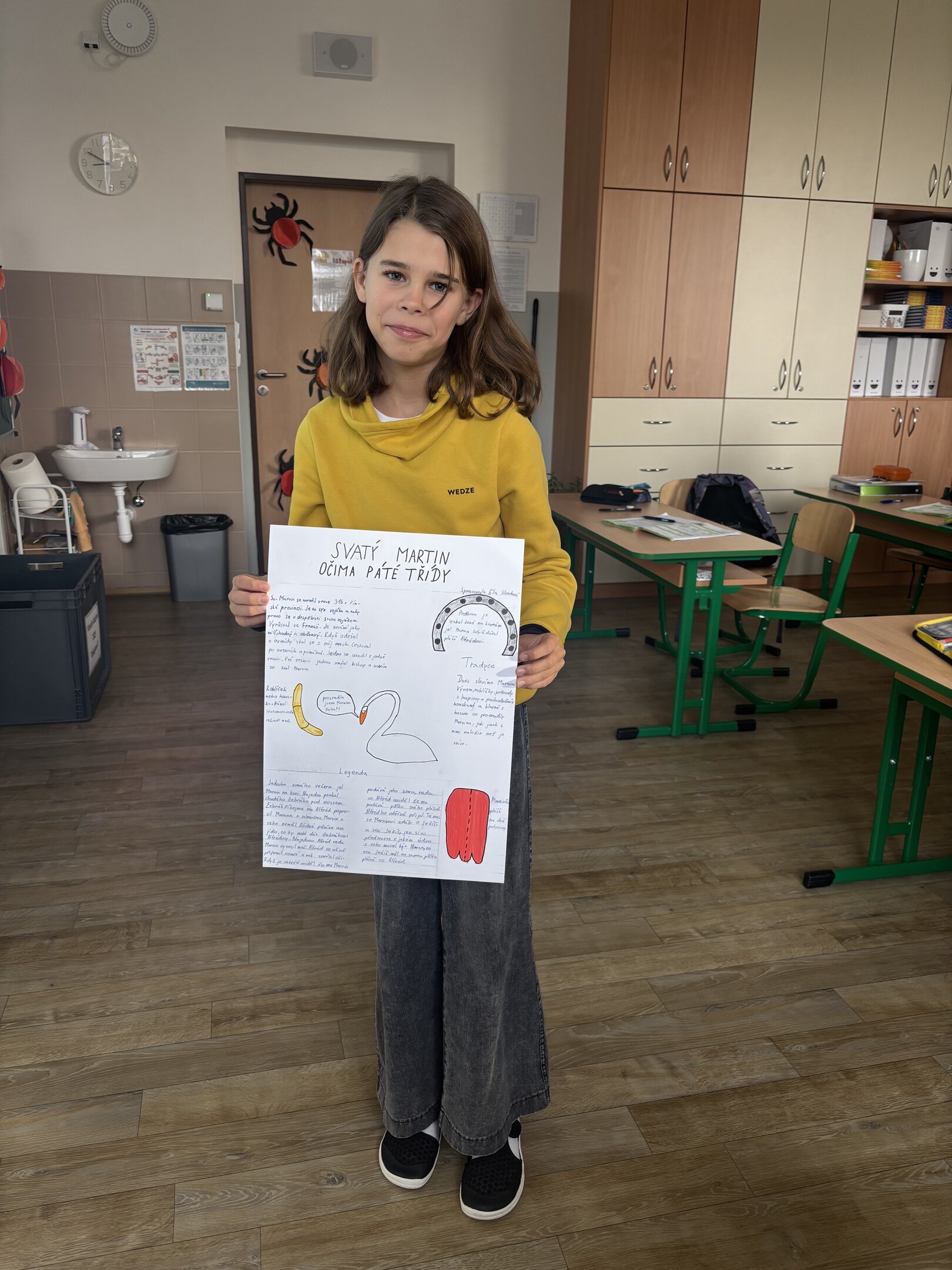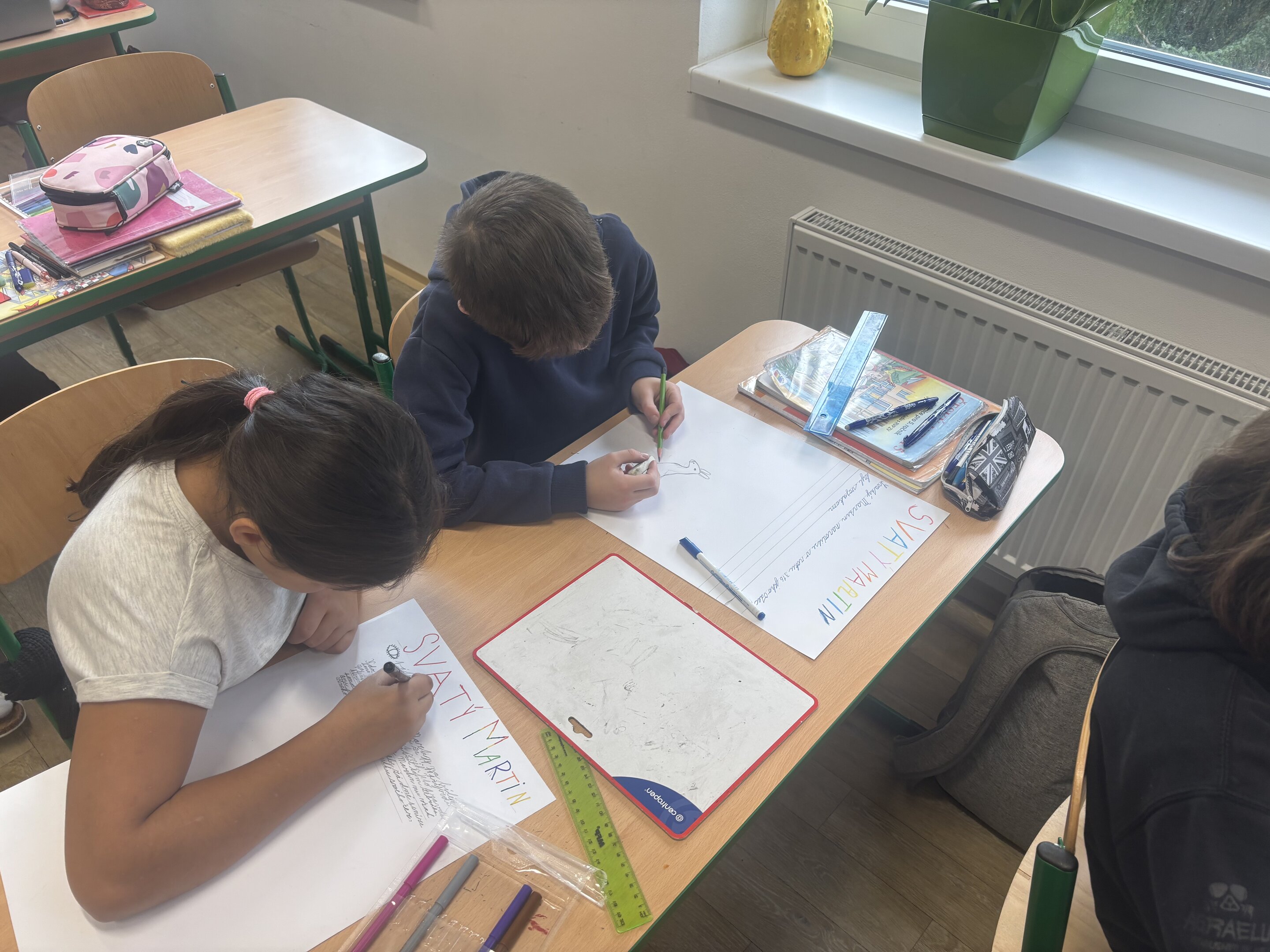 Výsledné plakáty byly barevné, nápadité a plné zajímavých informací. Děti si na nich daly opravdu záležet – každý měl svůj originální styl. Celá třída si tak nejen připomněla tradice svatomartinského svátku, ale i to, že dobrota, ochota a pomoc druhým jsou hodnoty, které neztrácí význam ani dnes.