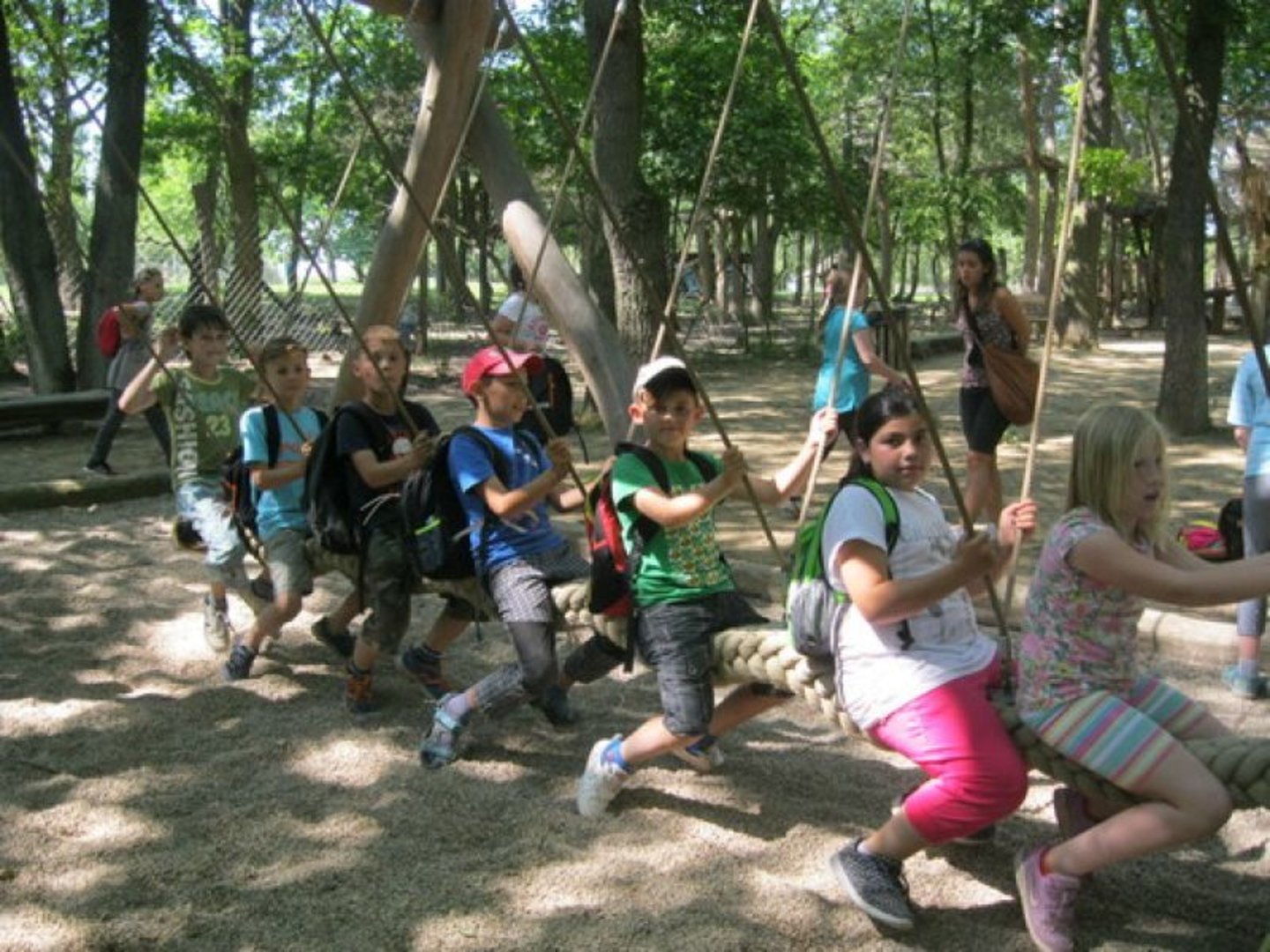 Cílem jejich cesty byly značně vzdálené Milovice. Zde byl vybudován úžasný Park Mirákulum a v něm spousty atrakcí, zábavy, pohybu, ale také poučení. Děti si nejprve proběhly velké habrové bludiště. Během návštěvy dřevěného hradu překonávaly až desetimetrové výškové rozdíly, visuté mostky, skluzavky, rozhledny a průlezy. Vláčkem se pak přepravily na tankodrom, kde si mohly opravdu zblízka prohlédnout bojová vozidla, tanky, vrtulník a další vojenskou techniku. Po návratu do parku si děti pohrály v Zemi prasátka Pigyho. Následoval oběd v místní restauraci a potom návštěva lesní naučné stezky. Z minizoo se nikomu nechtělo odejít. Čekalo na nás ale ještě lanové centrum a velká trampolína. Pak už byl připraven autobus pro cestu zpět. Všichni se vrátili spokojeni, plni dojmů a skvělých zážitků.