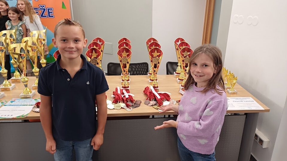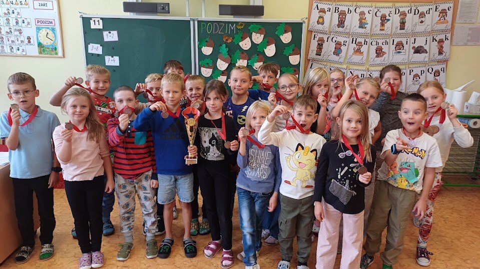 Naši loňští prvňáčci předvedli nejen velkou sportovní snahu, ale také týmového ducha a vzájemné povzbuzování při plnění těchto disciplín. Ve čtvrtek 25. září 2025 v sále Jana Kašpara v Pardubicích proběhlo slavnostní vyhlášení výsledků a zástupcům třídy byly předány medaile a pohár v kategorii 1. tříd. Za své nasazení byla oceněna celá třída.