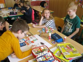 Pak jsme se zaměřili na užitek hospodářských zvířat a drůbeže, který poskytují lidem. Ve skupinách jsme vyrobili plakáty s různými živočišnými produkty a zařazovali je do skupin podle jejich původu.