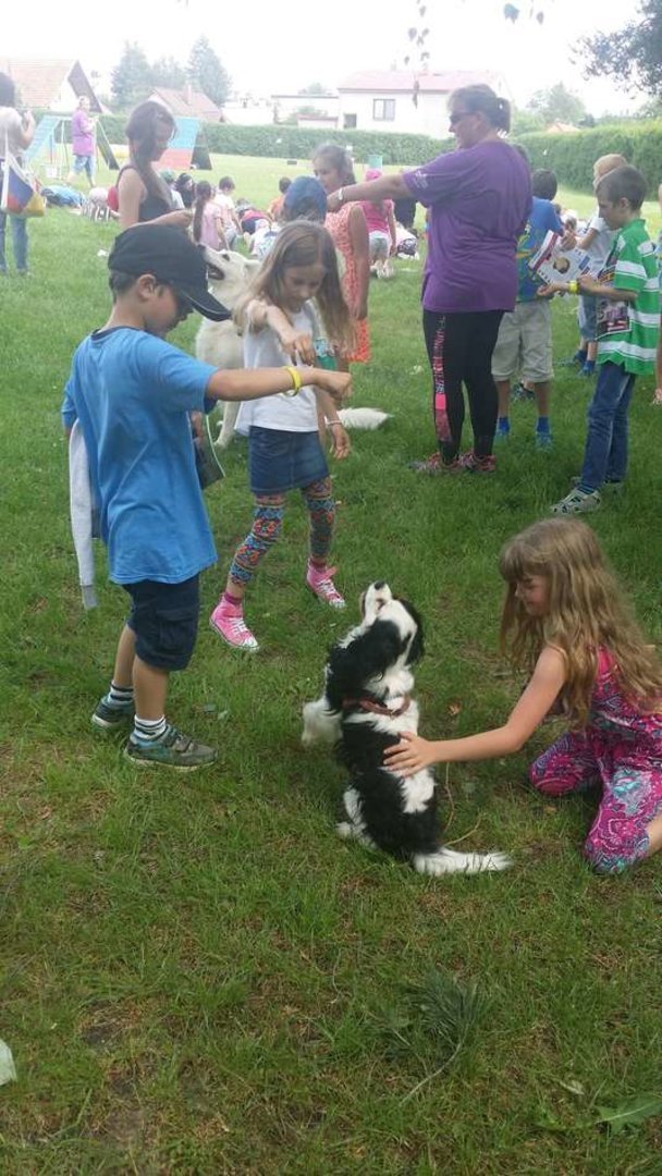 Děti chodily po stanovištích, kde plnily různé úkoly. Potom se mohly podívat na výcvik psů, jejich dovednost a obratnost při překonání překážek. Děti si pejsky mohly pohladit a dát jim psí pamlsky. Domů si odnesly nejen malé dárečky, ale i spoustu krásných zážitků.