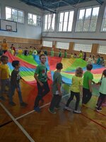 Kromě hudby a tance byly připraveny různé hry pro děti. V tělocvičně jsme si společně zahráli několik her s padákem. Dále si děti zahrály hru molekuly a byla pro ně připravena týmová hra. Na závěr si všichni zatančili tanec makarenu.