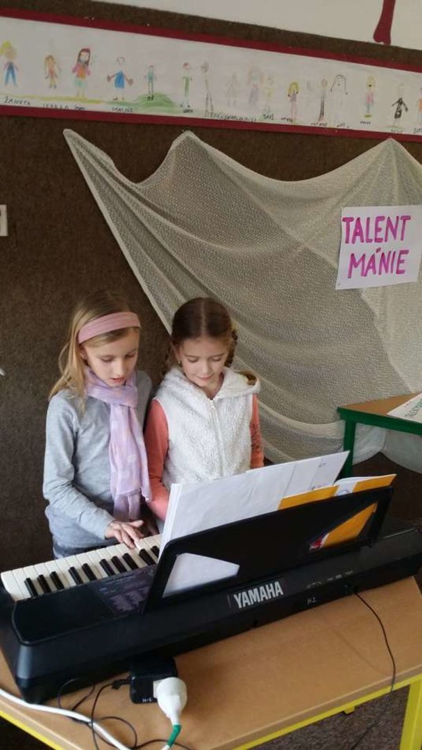 Děti si připravily vystoupení, které předvedly ve velkém finále. Měli jsme příležitost poslechnout si hru na klavír, housle, zvonkohru, violoncello nebo flétnu. Naše děti jsou velmi kreativní. Některá děvčata přinesla upečený perník i s receptem a dala všem ochutnat, abychom mohli ocenit jejich práci. Chlapci ukazovali fotografie staveb z plastových víček, které sestavili právě na tuto akci. Samozřejmě nechyběla ani kouzelnická vystoupení nebo taneční choreografie. Talentmánii jsme si užili a všichni účinkující získali odměnu.