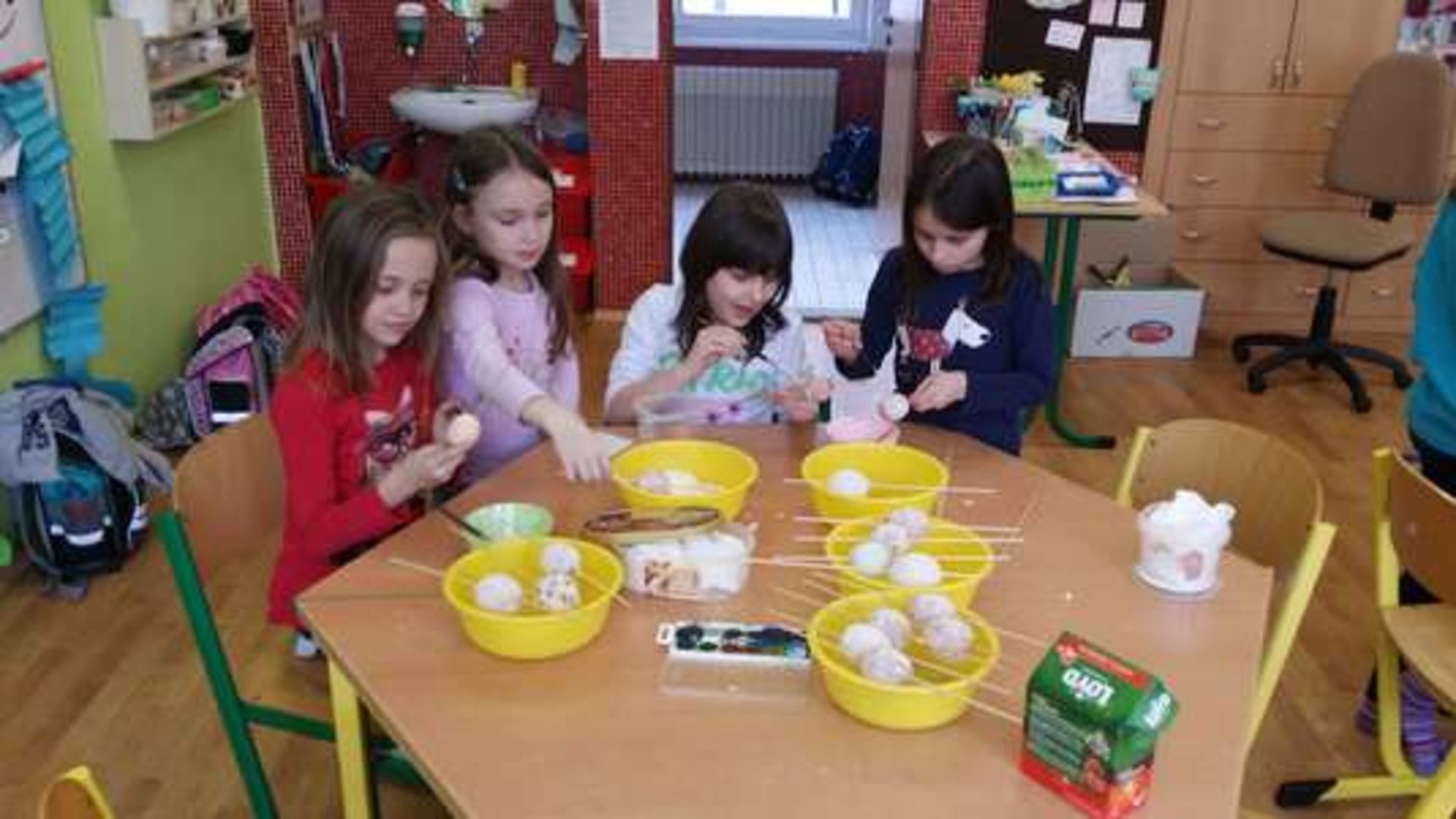 V rámci velikonočního tvoření ŠD připravila velikonoční dílnu, ve které si děti mohly vyrobit velikonoční přání, ozdobit kraslice nebo zasít osení.