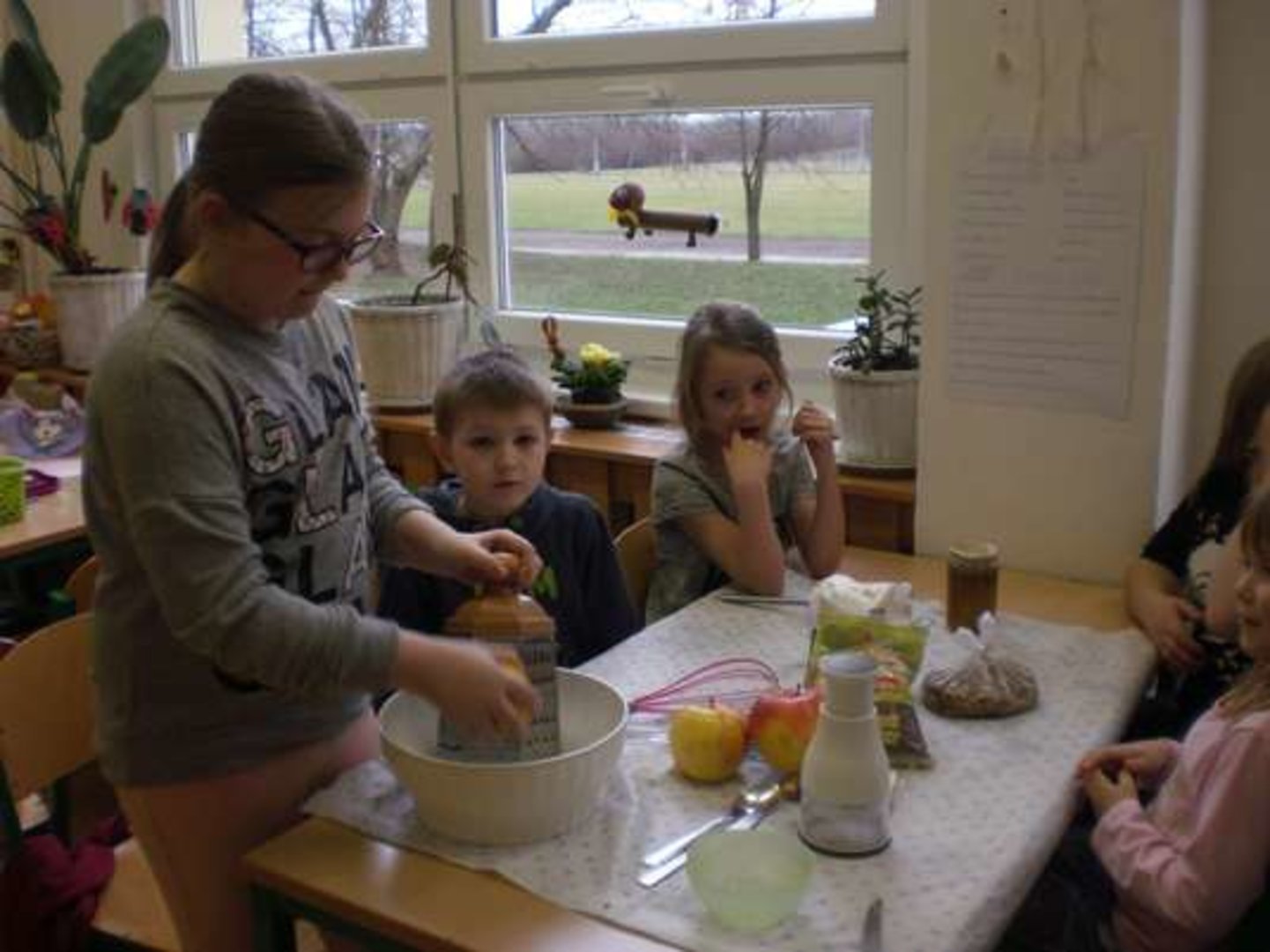 Ve 4.oddělení jsme vítali jaro a blížící se Velikonoce pečením zdravých a snad i dobrých koleček(i koláčků) z ovesných vloček, ořechů a jablíček. Protože se většina dětí chtěla na přípravě podílet, trvalo nám pečení déle než jsme plánovali. Stihli jsme všichni před odchodem ochutnat-a pochválit si naše výtvory. Za pochvalu od ostatních oddělení děkujeme.